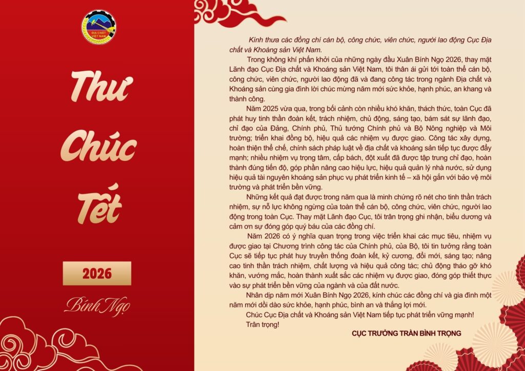 Thư chúc tết của Cục trưởng Cục Địa chất và Khoáng sản Việt Nam